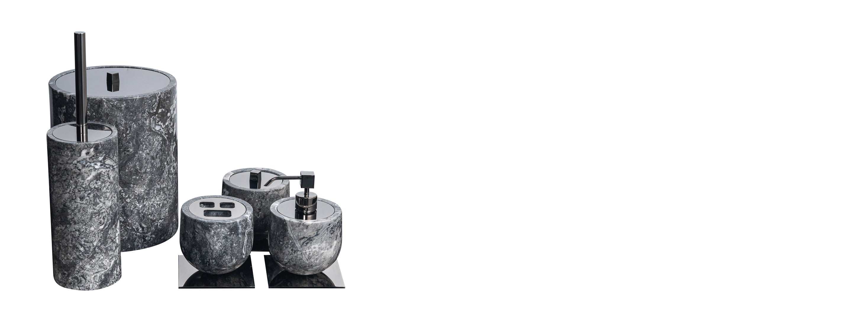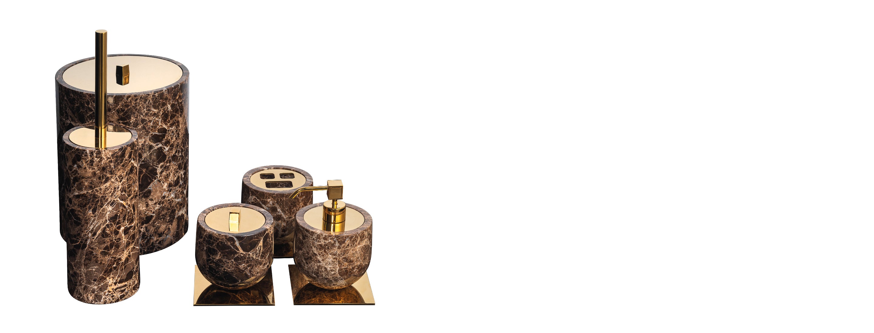 Piani Collection Crafted from natural stones transforms bathroom essentials into sculptural accents.