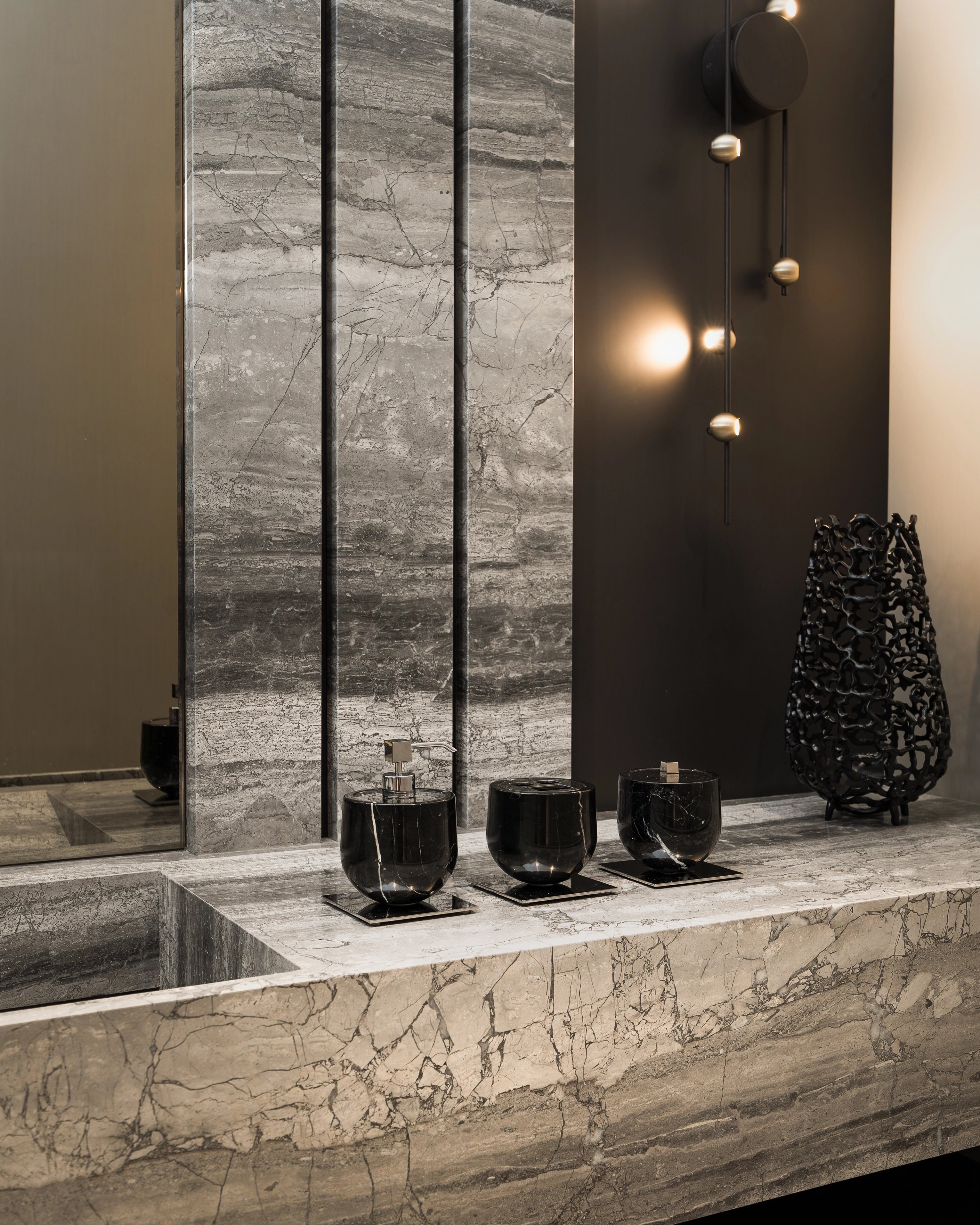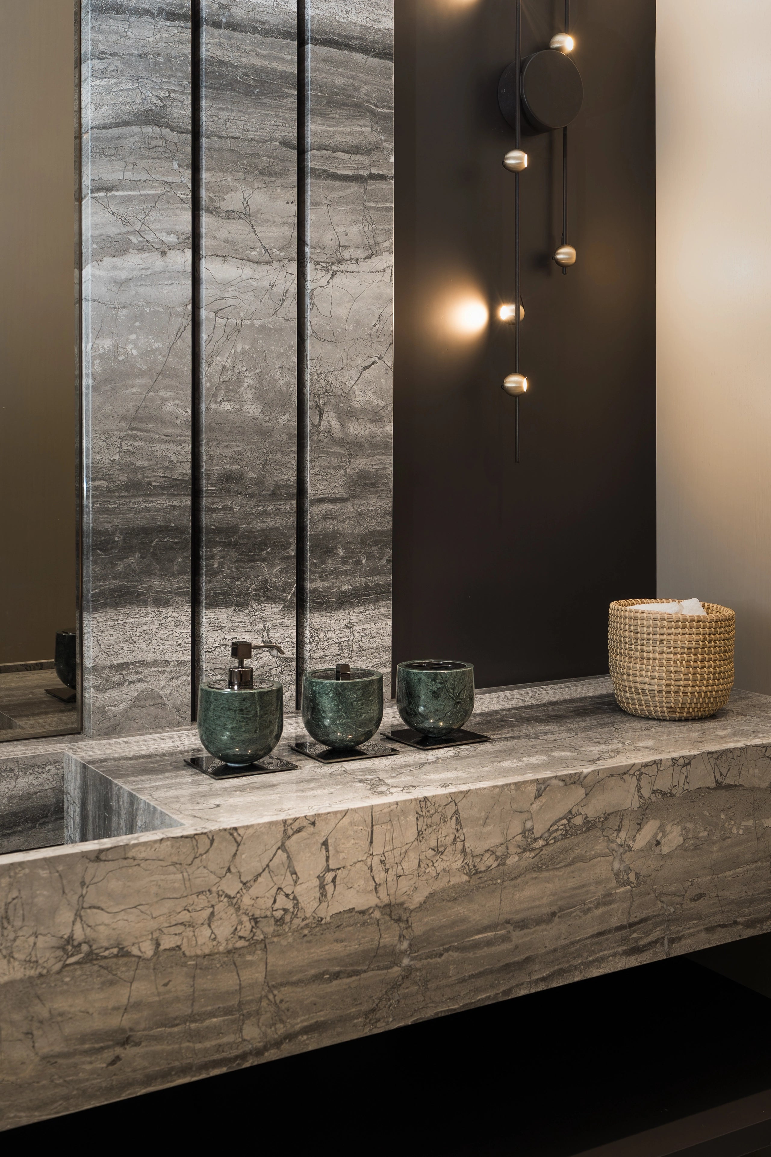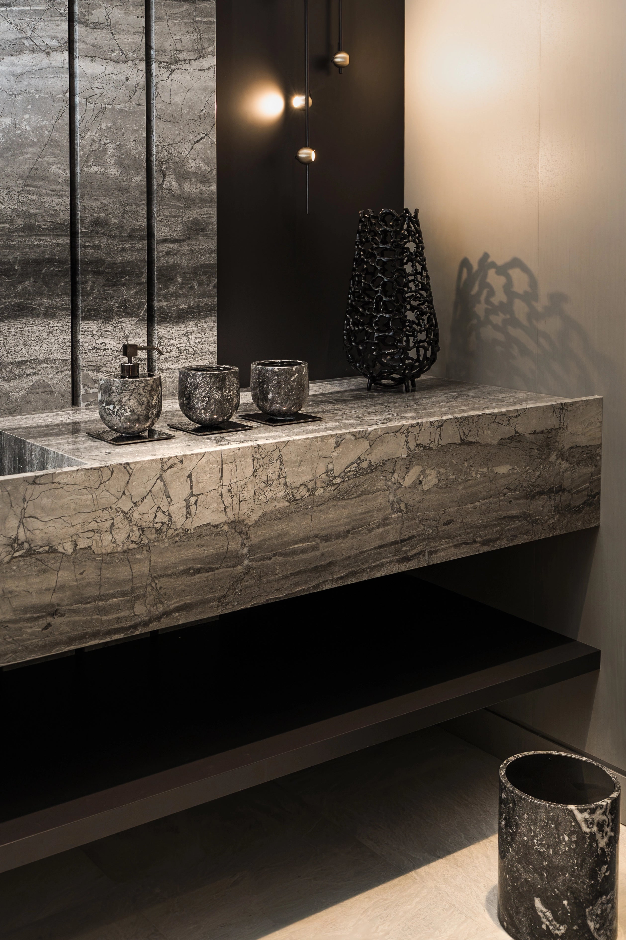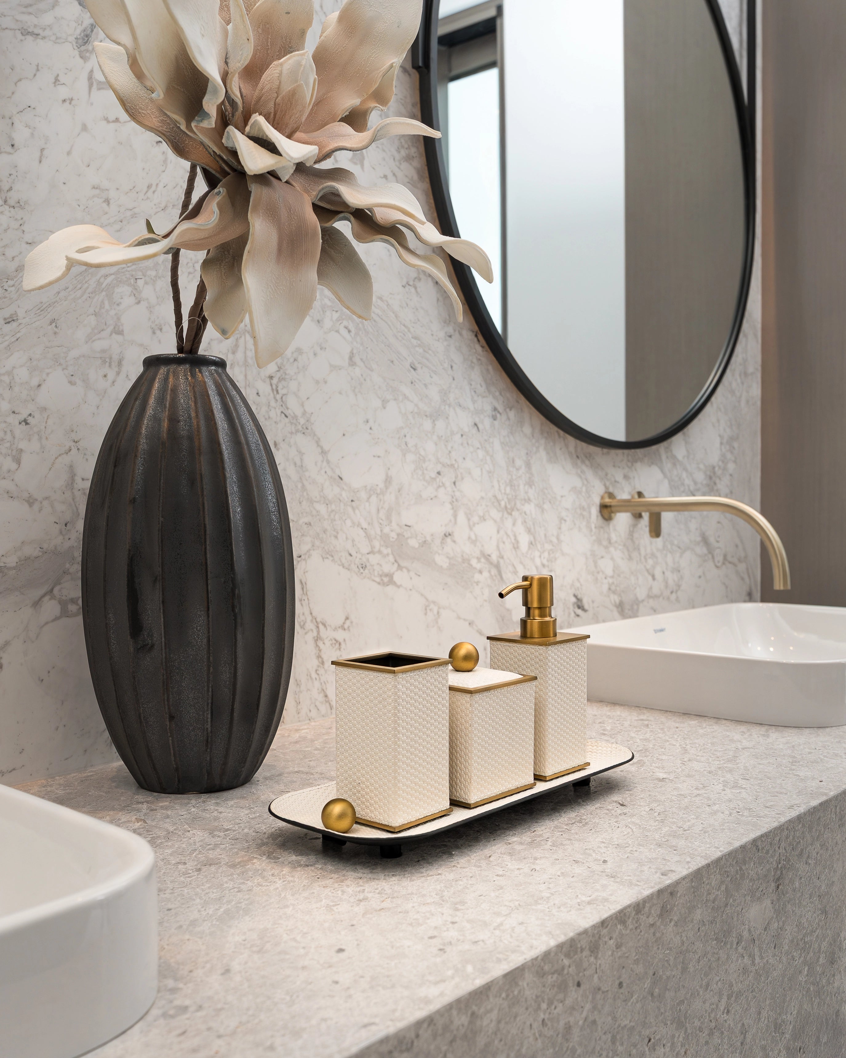 Explore this collectionThe Piani Emperador Collection by Nootk turns bathroom essentials into sculptural statements. Each piece, carved from rich Emperador marble and finished with warm gold accents, is entirely unique.
