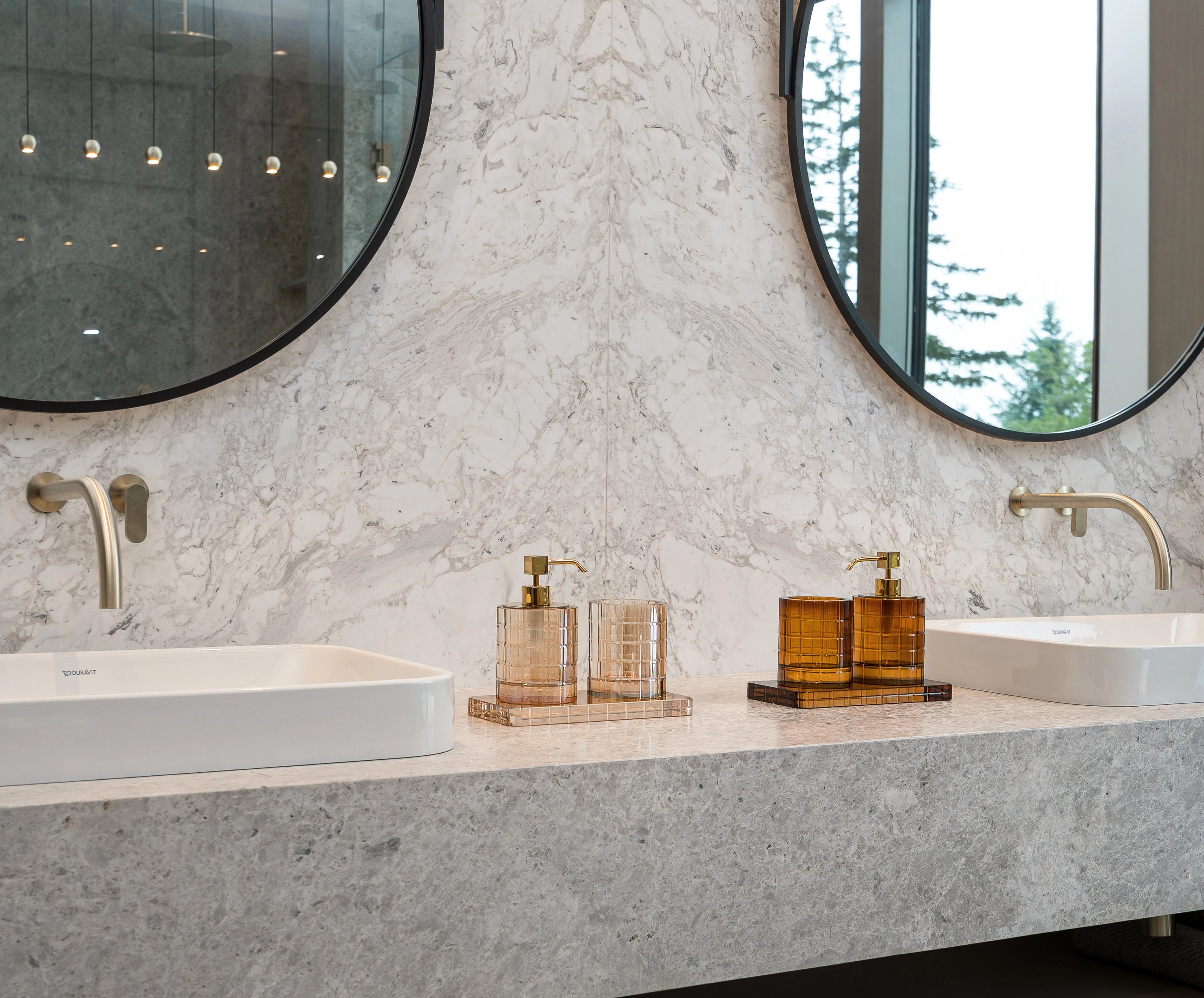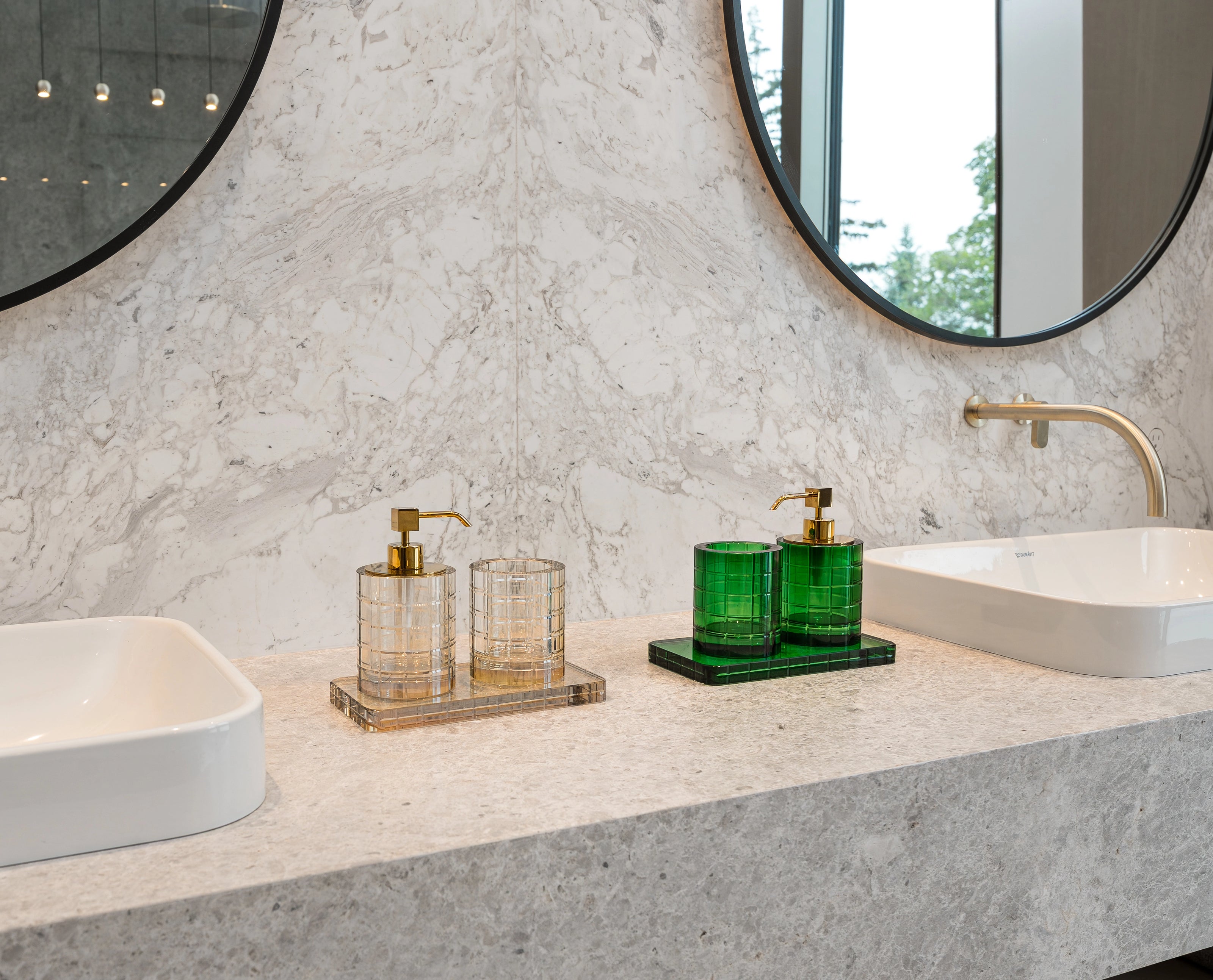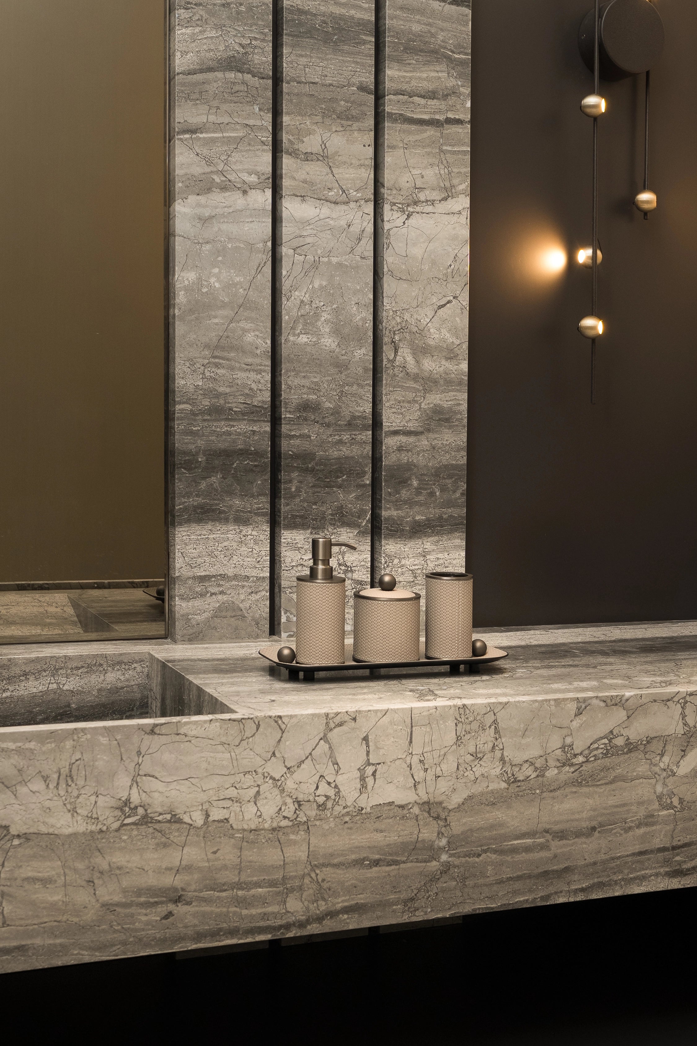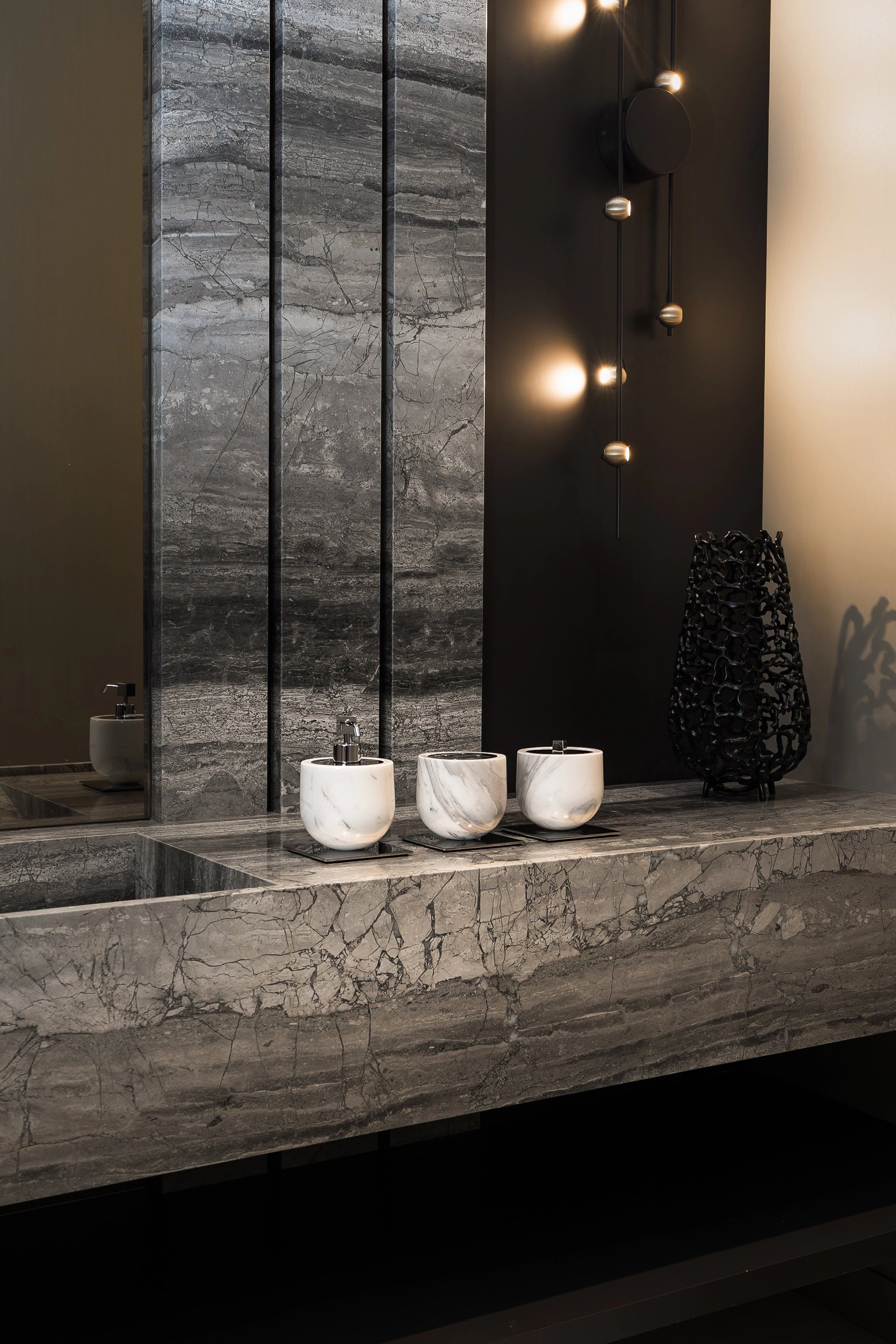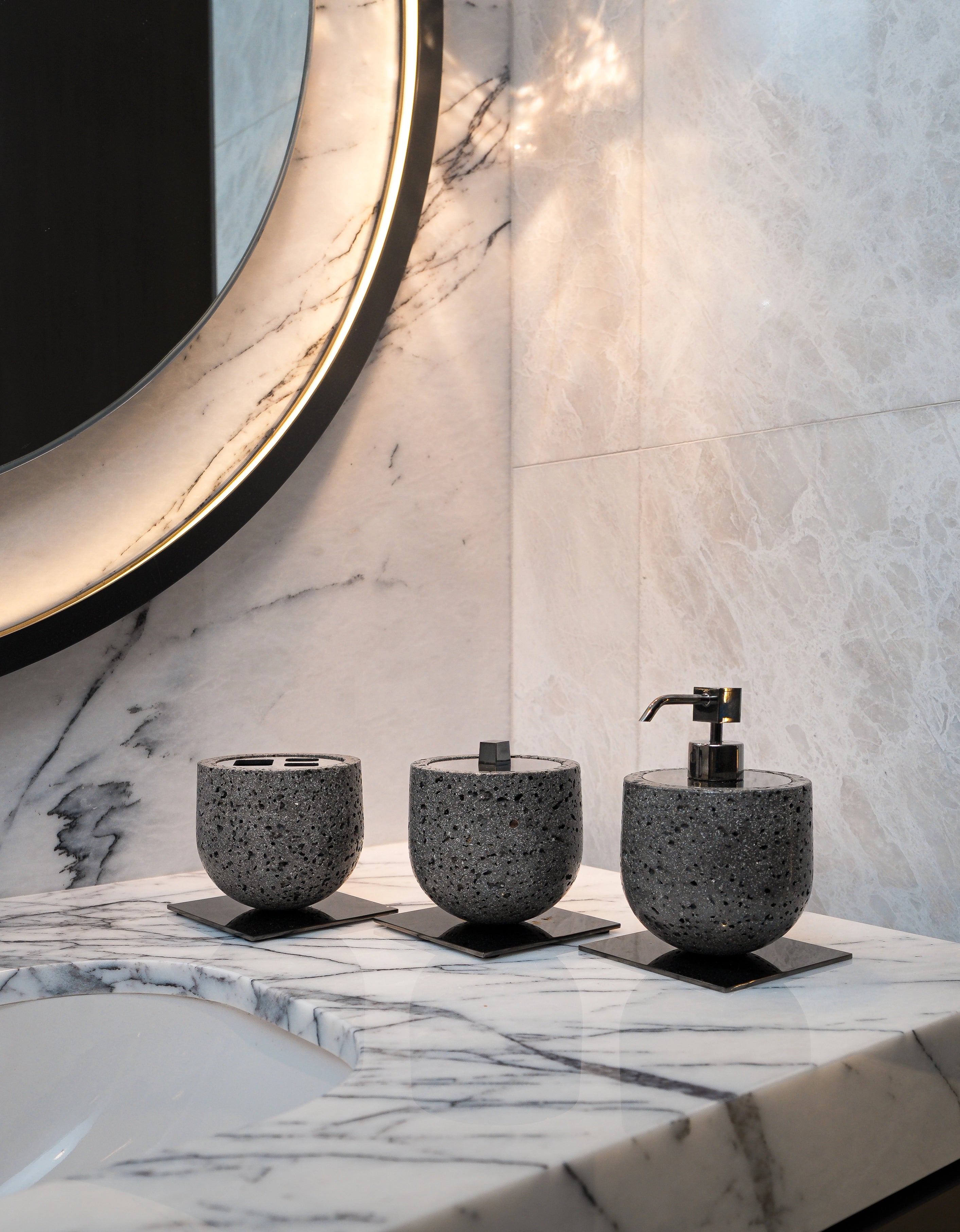 Explore this collectionTransform your bathroom with the Piani Bardiglio collection. Handcrafted from unique Bardiglio marble, each piece, soap dispenser, toothbrush holder, canister, and toilet brush, blends sculptural elegance with durable design. Minimalist, luxurious, and timeless, this Canadian-designed ensemble elevates everyday routines into moments of refined beauty.