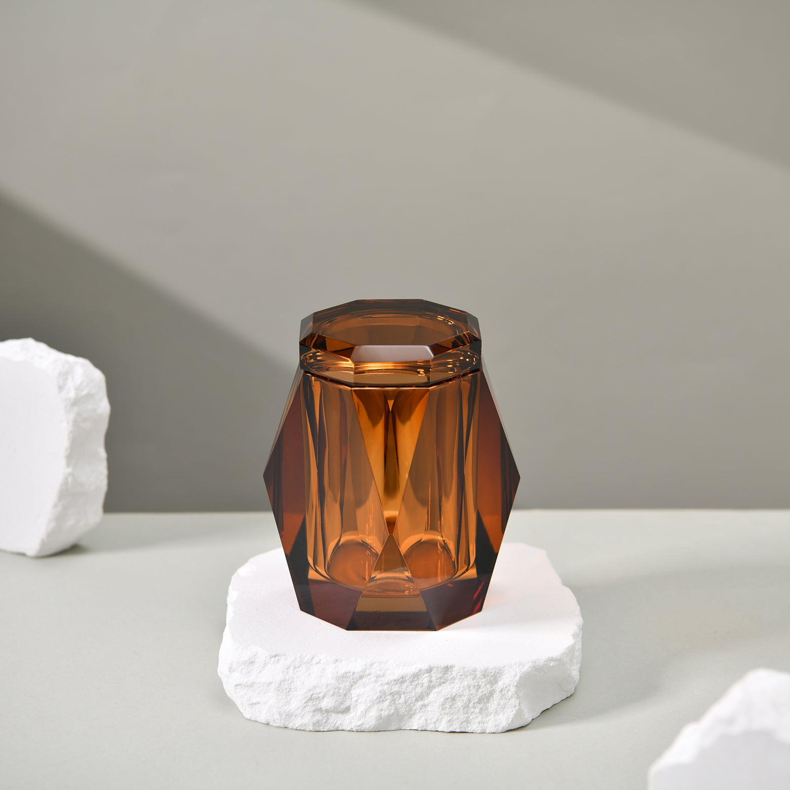 Elevate your bathroom space with the Pianza, an exquisite handcrafted crystal Cotton swab holder from Nootk. Designed in Canada, this piece blends modern geometry with timeless elegance. Its multi-faceted silhouette and jewel-like form transform everyday utility into a luxurious statement.