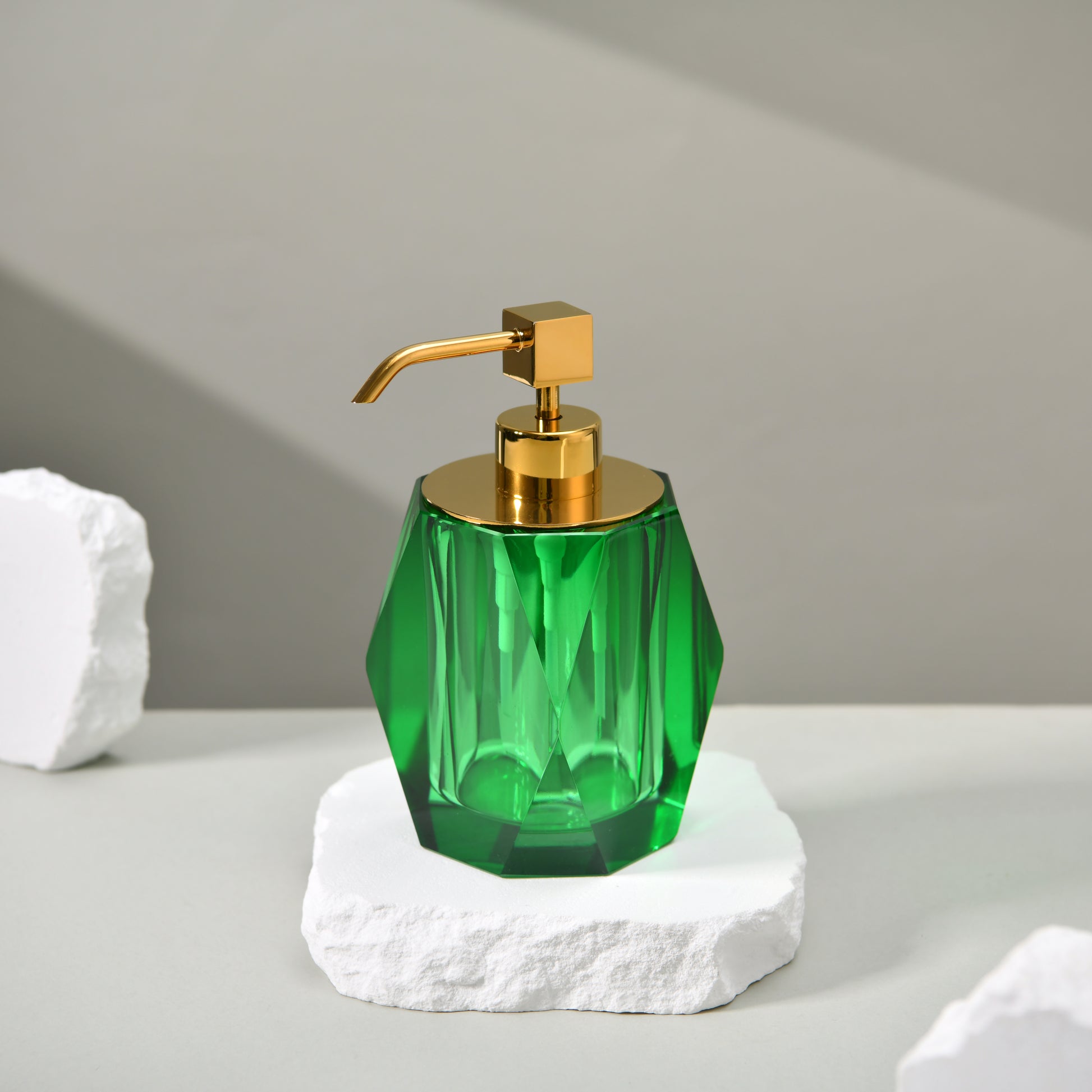 Elevate your bathroom space with the Pianza, an exquisite handcrafted crystal Soap Dispenser from Nootk. Designed in Canada, this piece blends modern geometry with timeless elegance. Its multi-faceted silhouette and jewel-like form transform everyday utility into a luxurious statement.