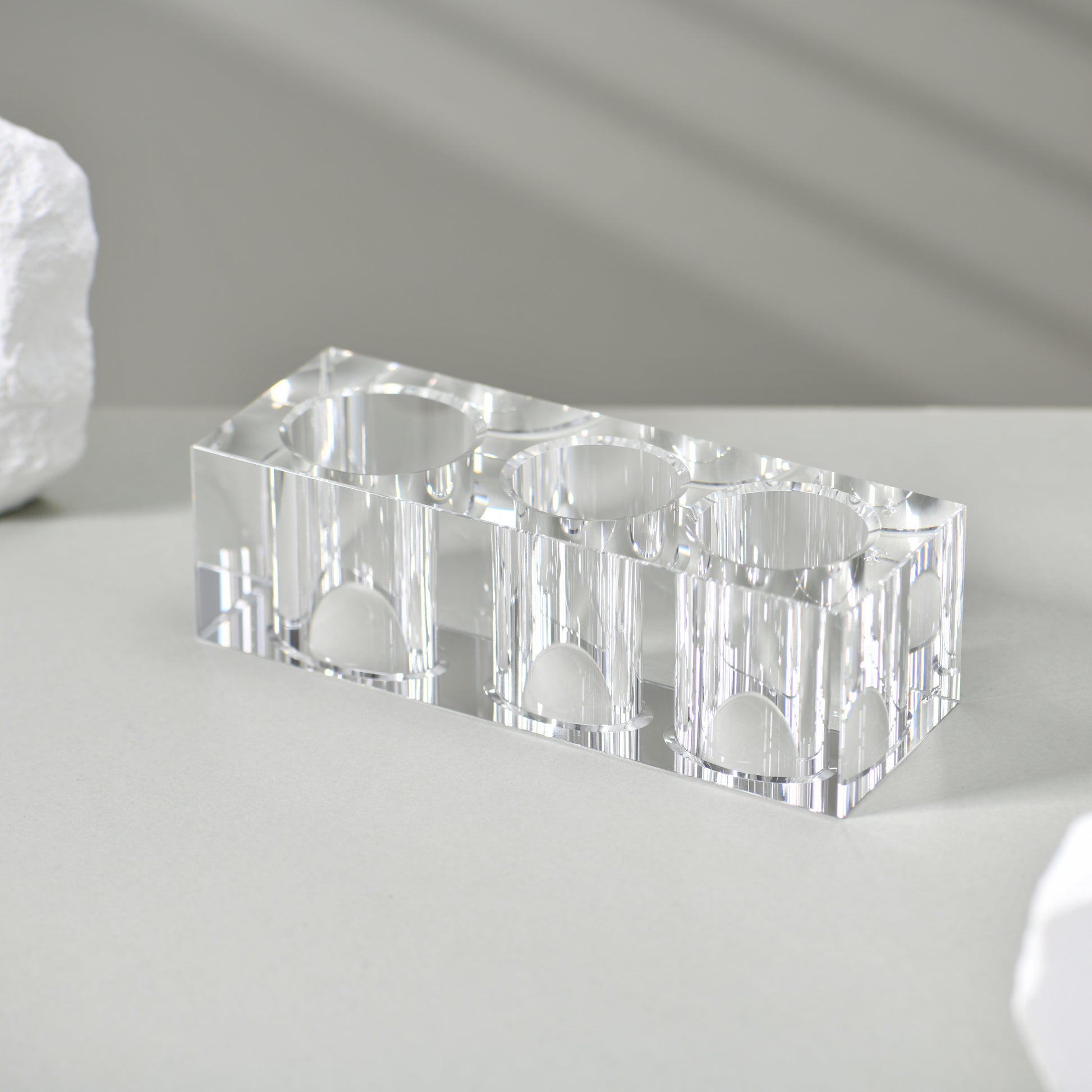 Elevate your bathroom space with an exquisite handcrafted crystal Toothbrush holder from Nootk. Designed in Canada, this piece blends modern geometry with timeless elegance. Its multi-faceted silhouette and jewel-like form transform everyday utility into a luxurious statement. Crafted from premium-grade crystal, each Holder is precision cut and polished by hand, delivering brilliance and lasting quality. With a gemstone-inspired shape, the Fibo stands as both a functional accessory and a sculptural accent. Whether paired with other items from the Fibo Nootk collection or showcased alone, the Fibo brings sophisticated refinement to any vanity or bathroom setting.