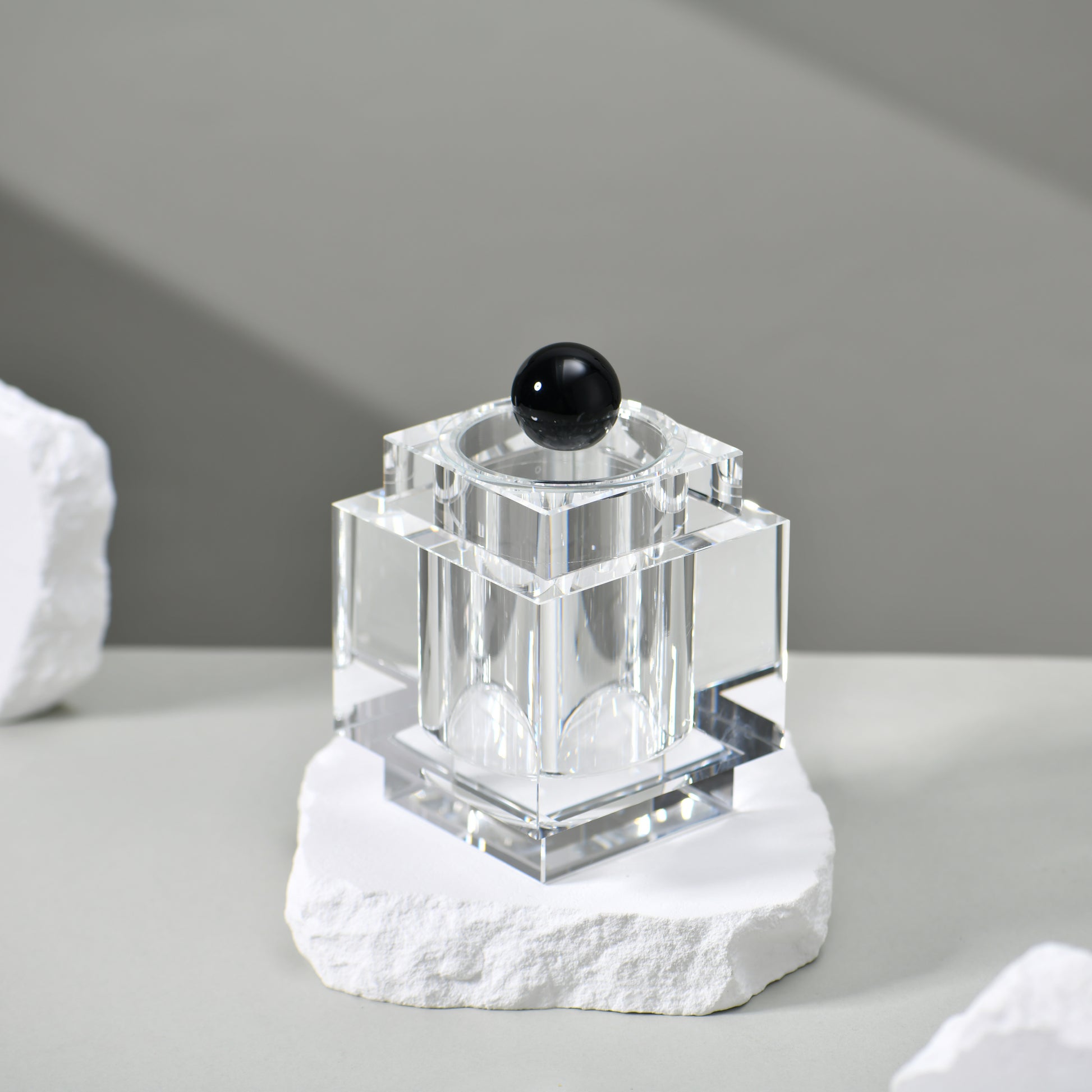 Elevate your bathroom space with the Fibo, an exquisite handcrafted crystal Cotton swab holder from Nootk. Designed in Canada, this piece blends modern geometry with timeless elegance. Its multi-faceted silhouette and jewel-like form transform everyday utility into a luxurious statement.