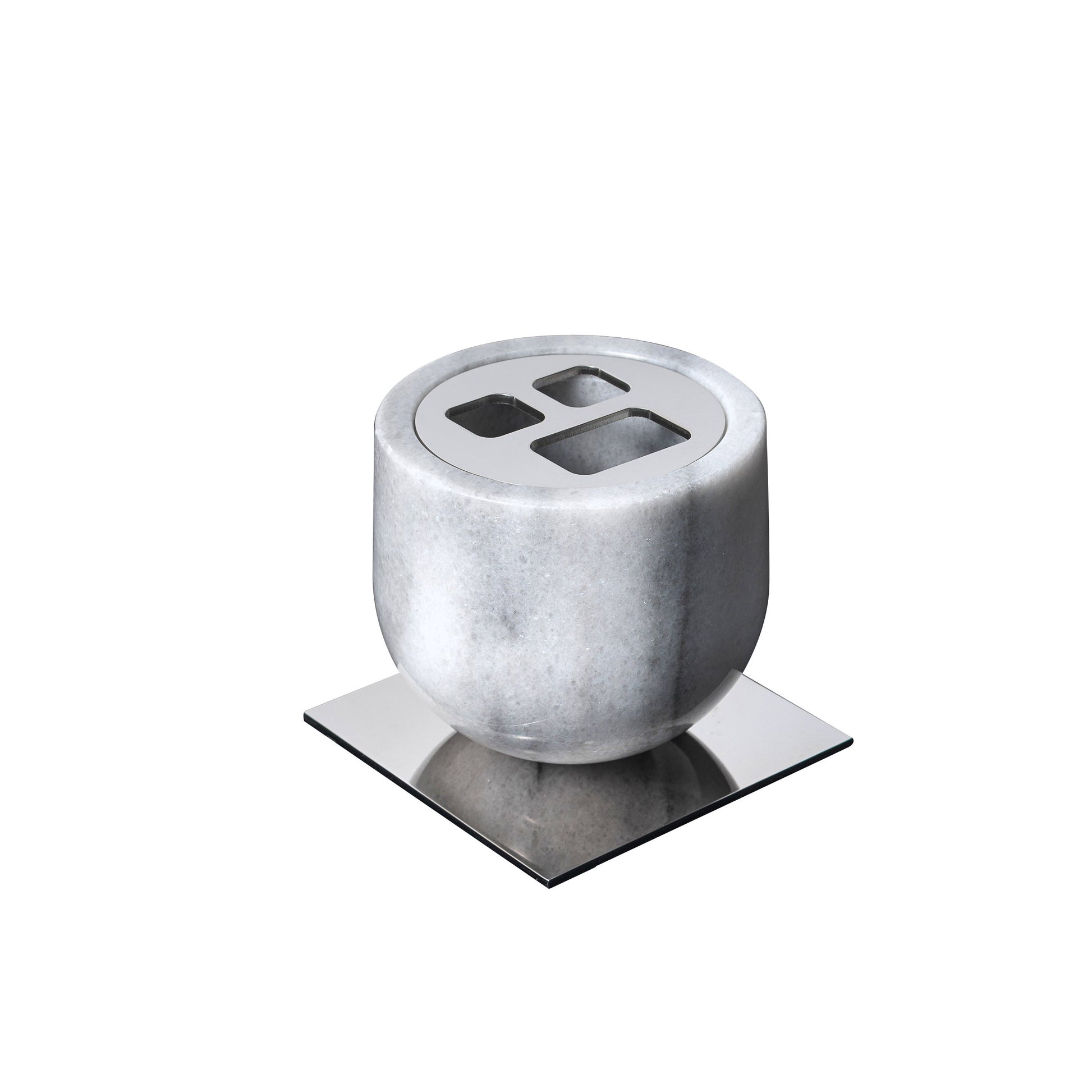 Minimalist yet distinctive, the Piani Carrara toothbrush holder features a smooth cylindrical silhouette that highlights the cool elegance of white marble. Its subtle grey veining and hand-polished surface make it a timeless accent, perfect for contemporary or classic vanity arrangements.