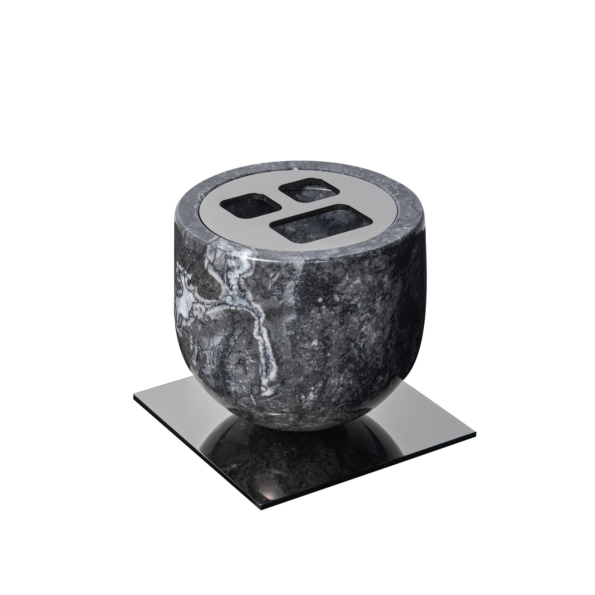 Sleek and architectural, the Piani Bardiglio toothbrush holder highlights the raw elegance of natural marble. Its open cylindrical design accentuates the stone’s smoky veining and unique texture, offering a minimalist yet distinctive addition to any vanity or sink-side arrangement.