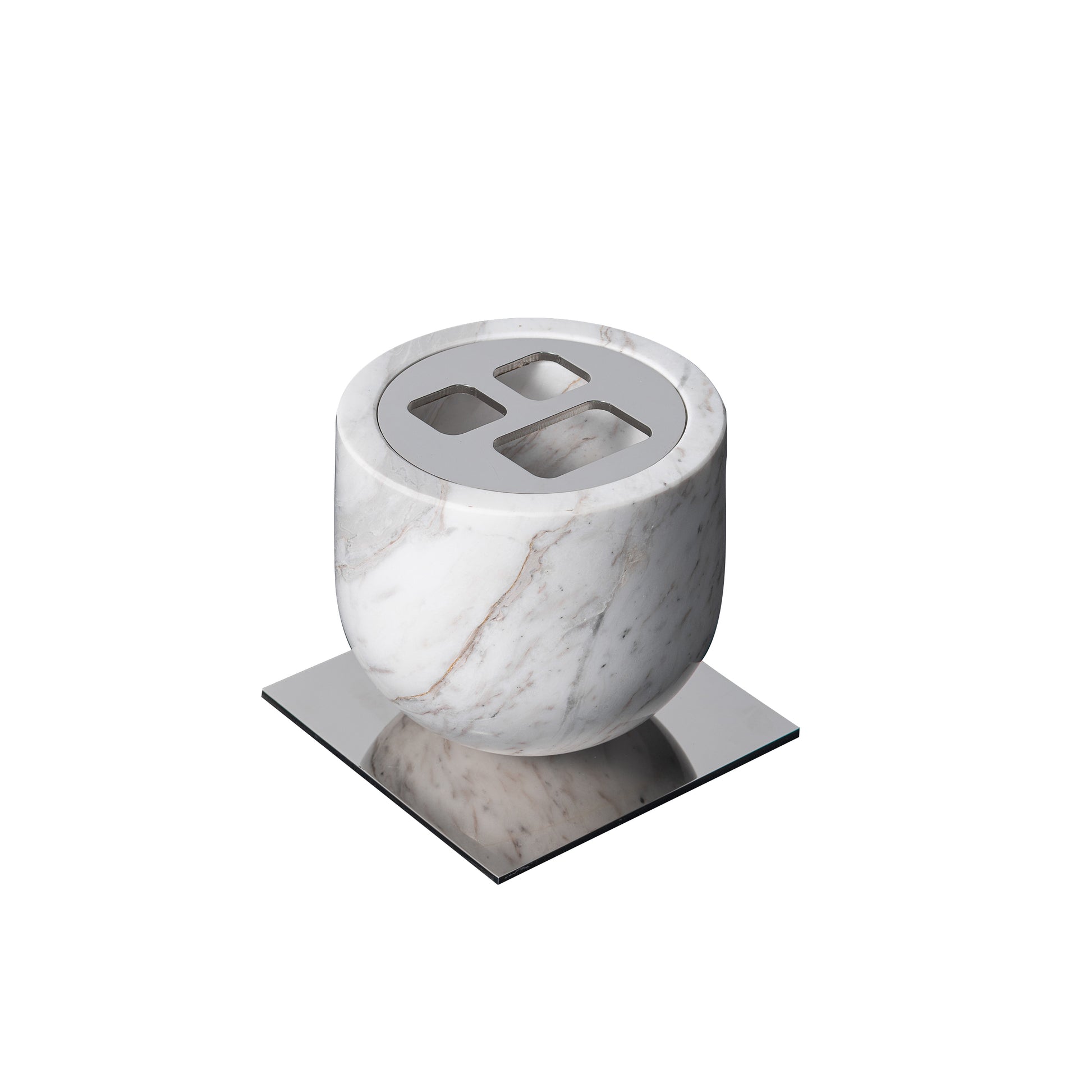 Clean, cylindrical, and understated, the Piani Calacatta toothbrush holder celebrates the beauty of simplicity. Its natural marble body is hand-polished to highlight the stone’s luminous veining, offering a striking yet subtle addition to any vanity. A refined piece that turns daily routines into elevated rituals.