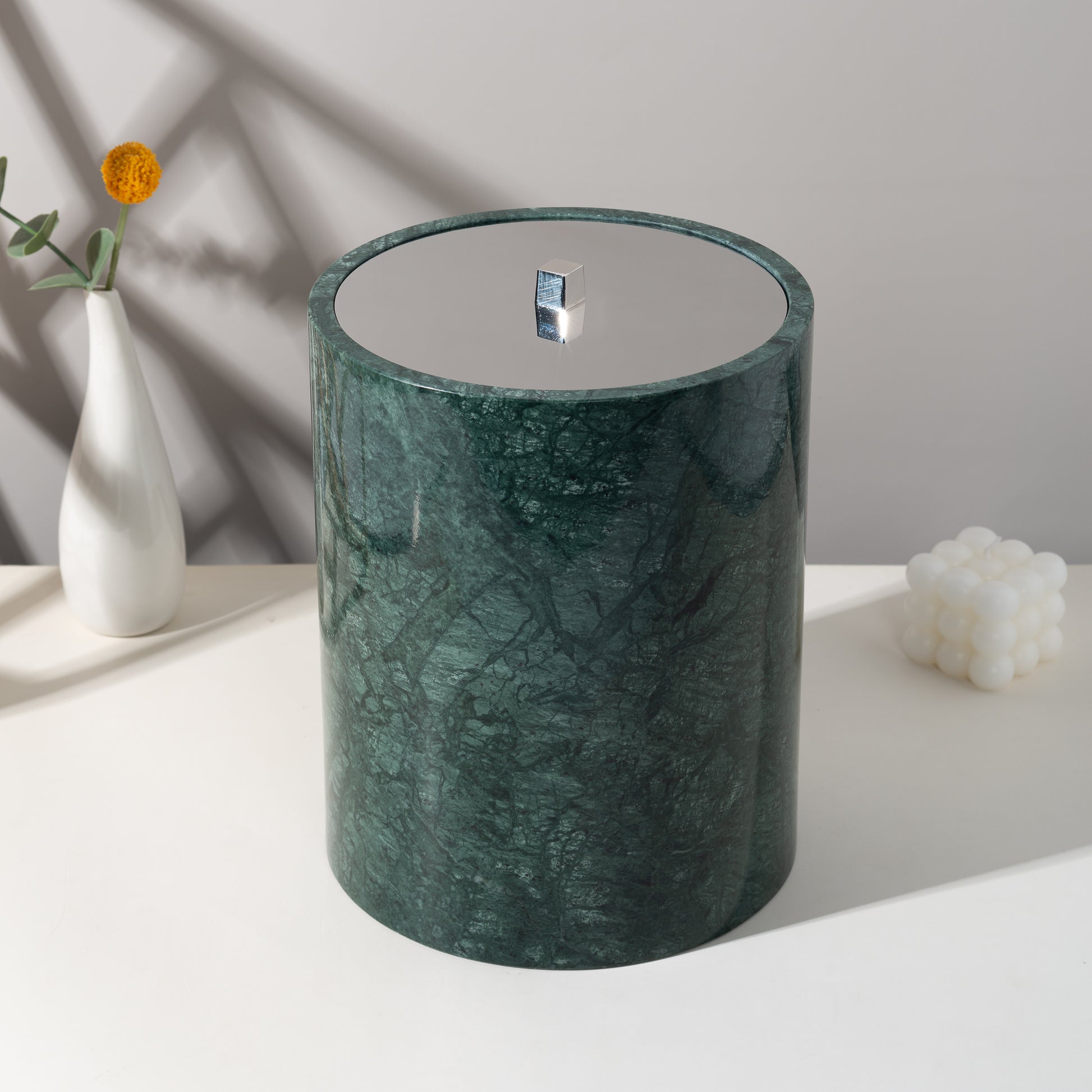 The Piani Verde trash can transforms a daily essential into a powerful design element. Its solid marble base, detailed with forest-toned veining, is paired with refined metal components for a sculptural, grounded presence that enhances both classic and contemporary interiors.