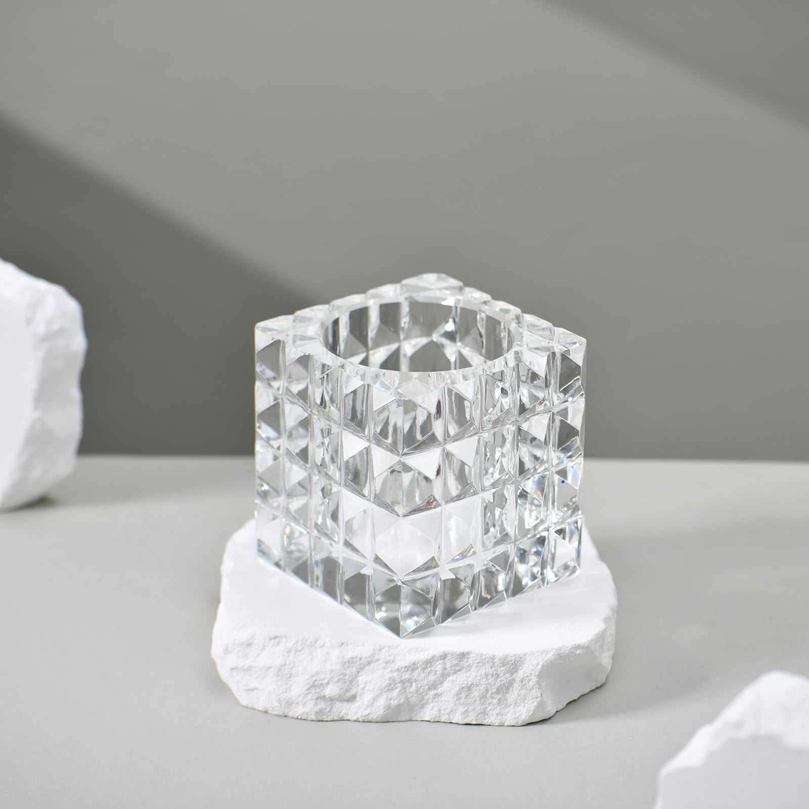 Crafted from premium-grade crystal, each Holder is precision cut and polished by hand, delivering brilliance and lasting quality. With a gemstone-inspired shape, the Ritzoo stands as both a functional accessory and a sculptural accent.