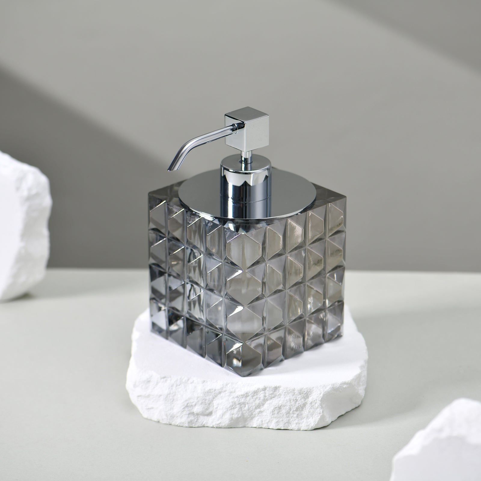 Elevate your bathroom space with the Ritzoo, an exquisite handcrafted crystal Soap Dispenser from Nootk. Designed in Canada, this piece blends modern geometry with timeless elegance. Its multi-faceted silhouette and jewel-like form transform everyday utility into a luxurious statement.