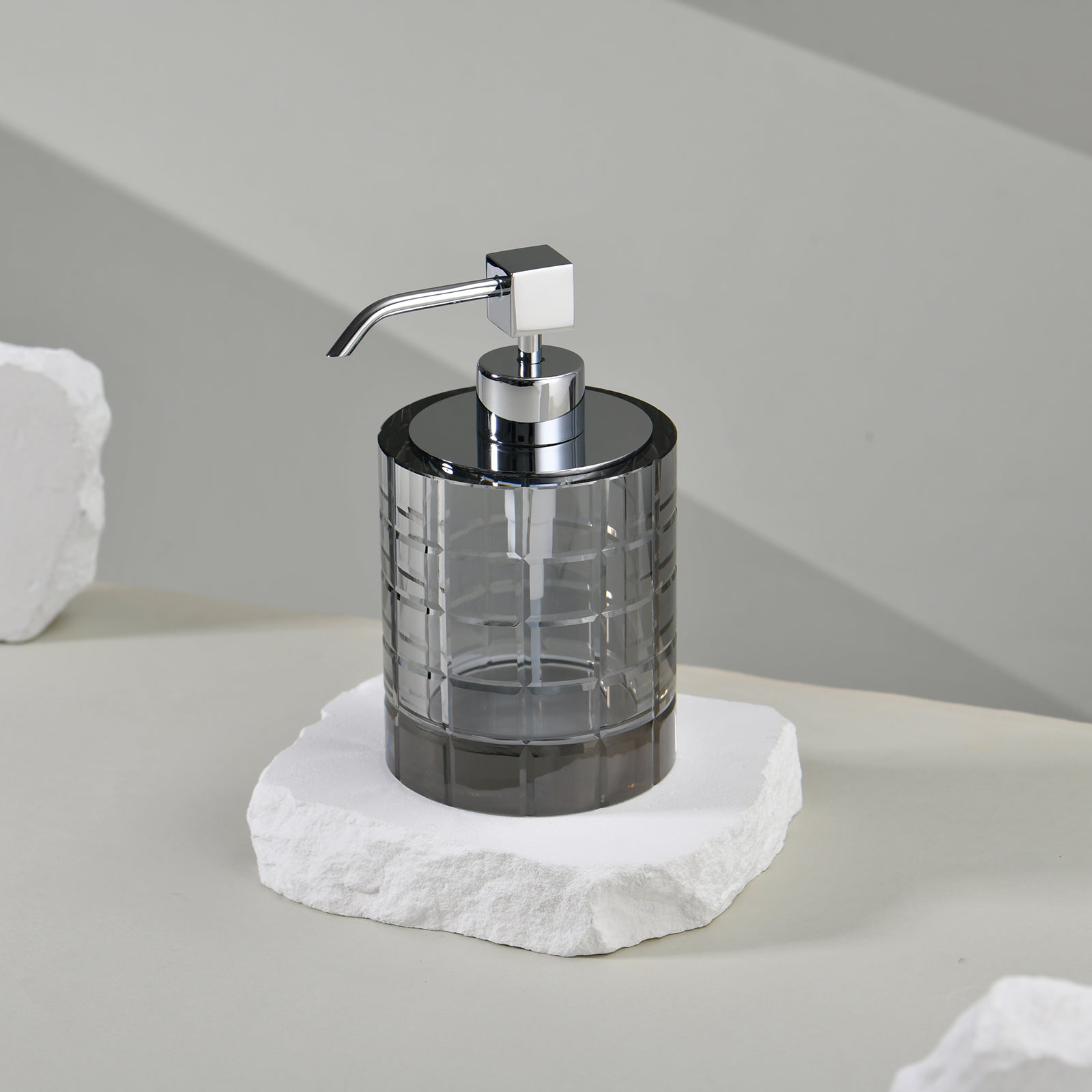 Crafted from premium-grade crystal, each Dispenser is precision cut and polished by hand, delivering brilliance and lasting quality. With a gemstone-inspired shape, the Visona stands as both a functional accessory and a sculptural accent.
